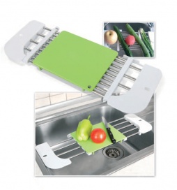 - это дополнительная рабочая поверхность на кухне. Выполненная из нержавеющей стали подставка регулируется в зависимости от размера раковины. Подставка невероятно компактна и идеально впишется в интерьер даже самой маленькой кухни. Она незаменима для хозяек, которые не терпят грязи. Вам больше не придется ходить через всю кухню с мытыми овощами, оставляя за собой мокрый след, чтобы нарезать их. всегда будет у Вас под рукой. Готовьте без забот с подставкой на раковину !